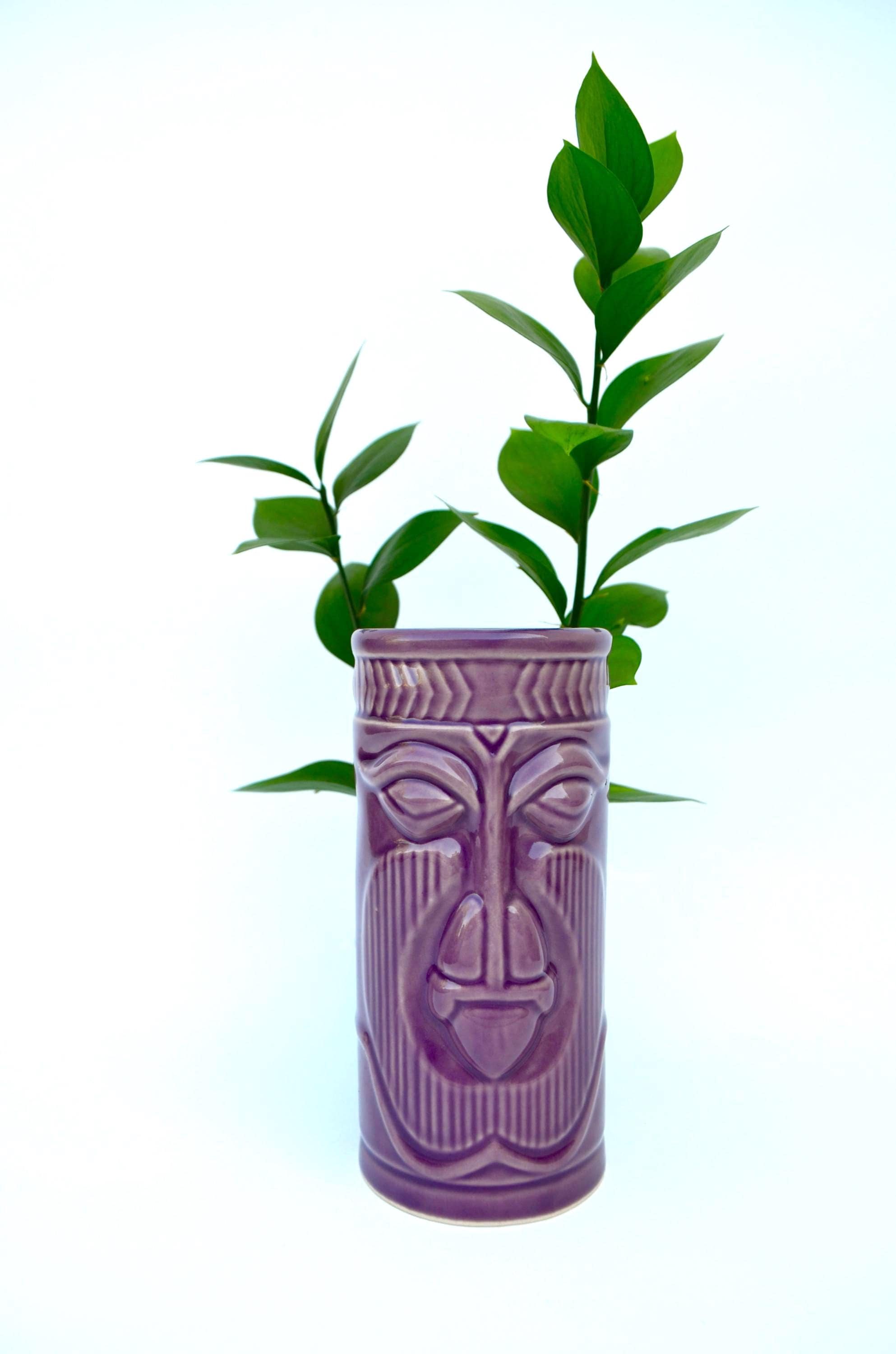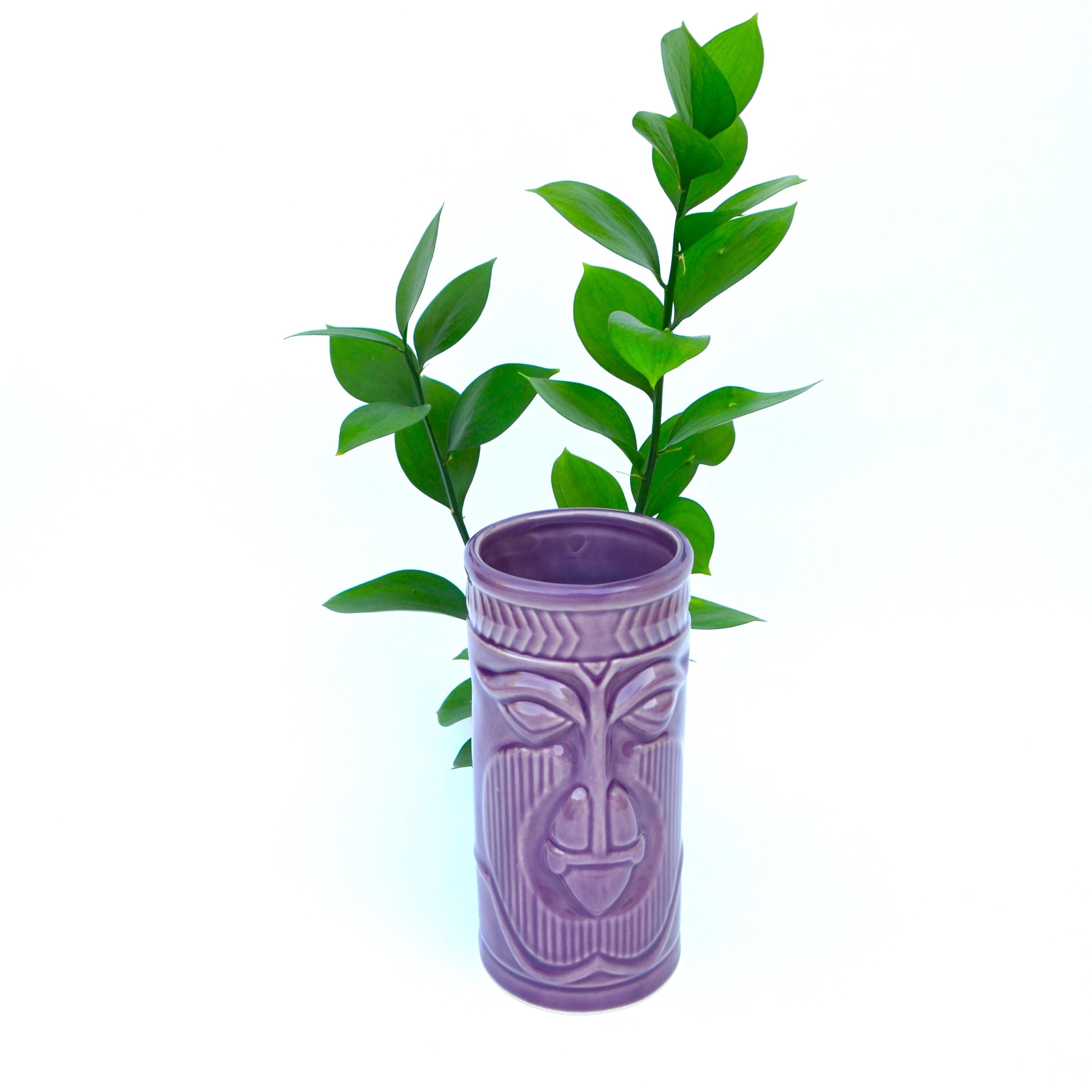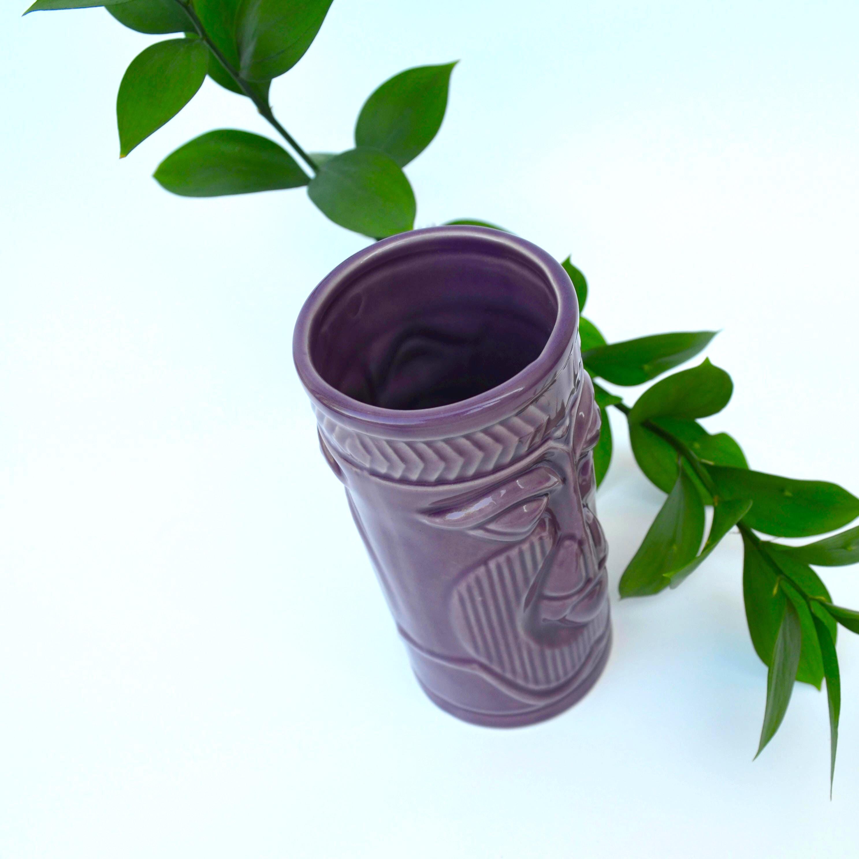 Vintage Tiki ceramic tumbler. Perfect to add a little character to your office or bar top. In a great shade of purple. We like to see it repurposed as a vase.