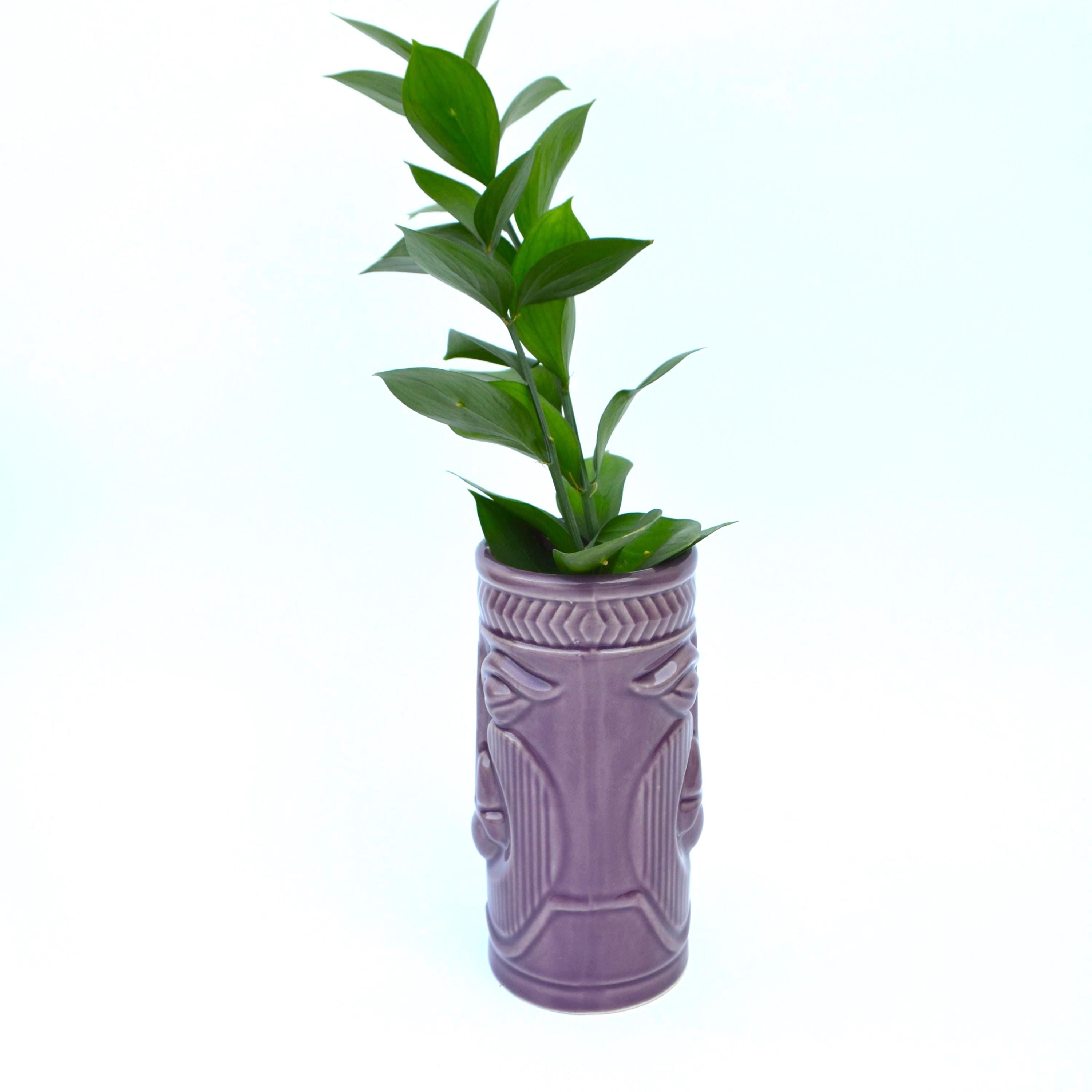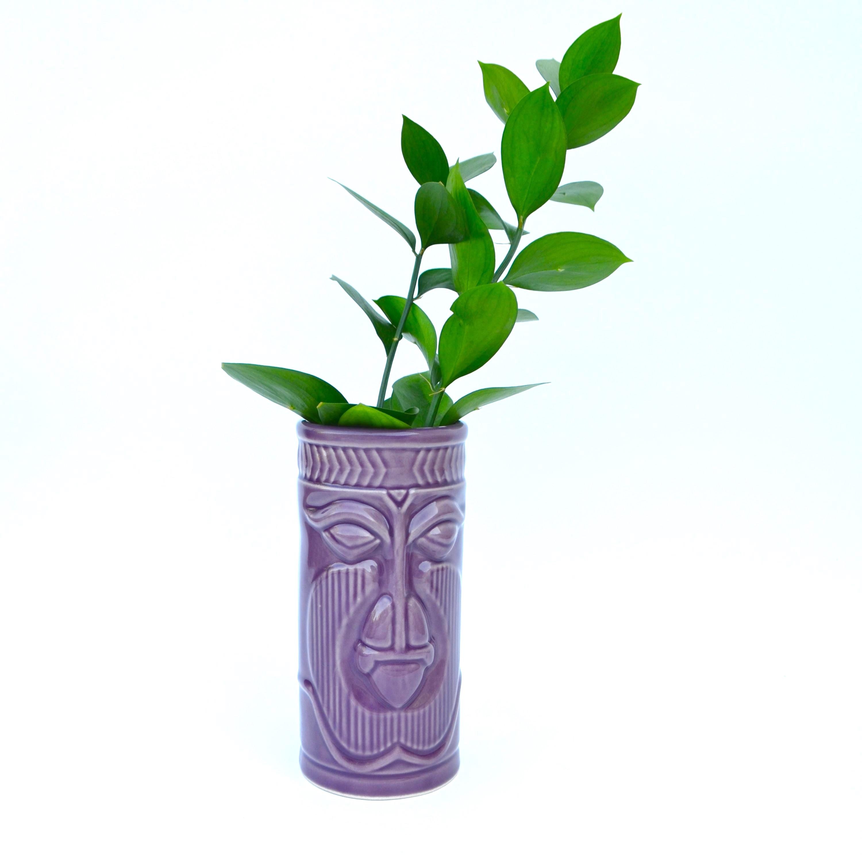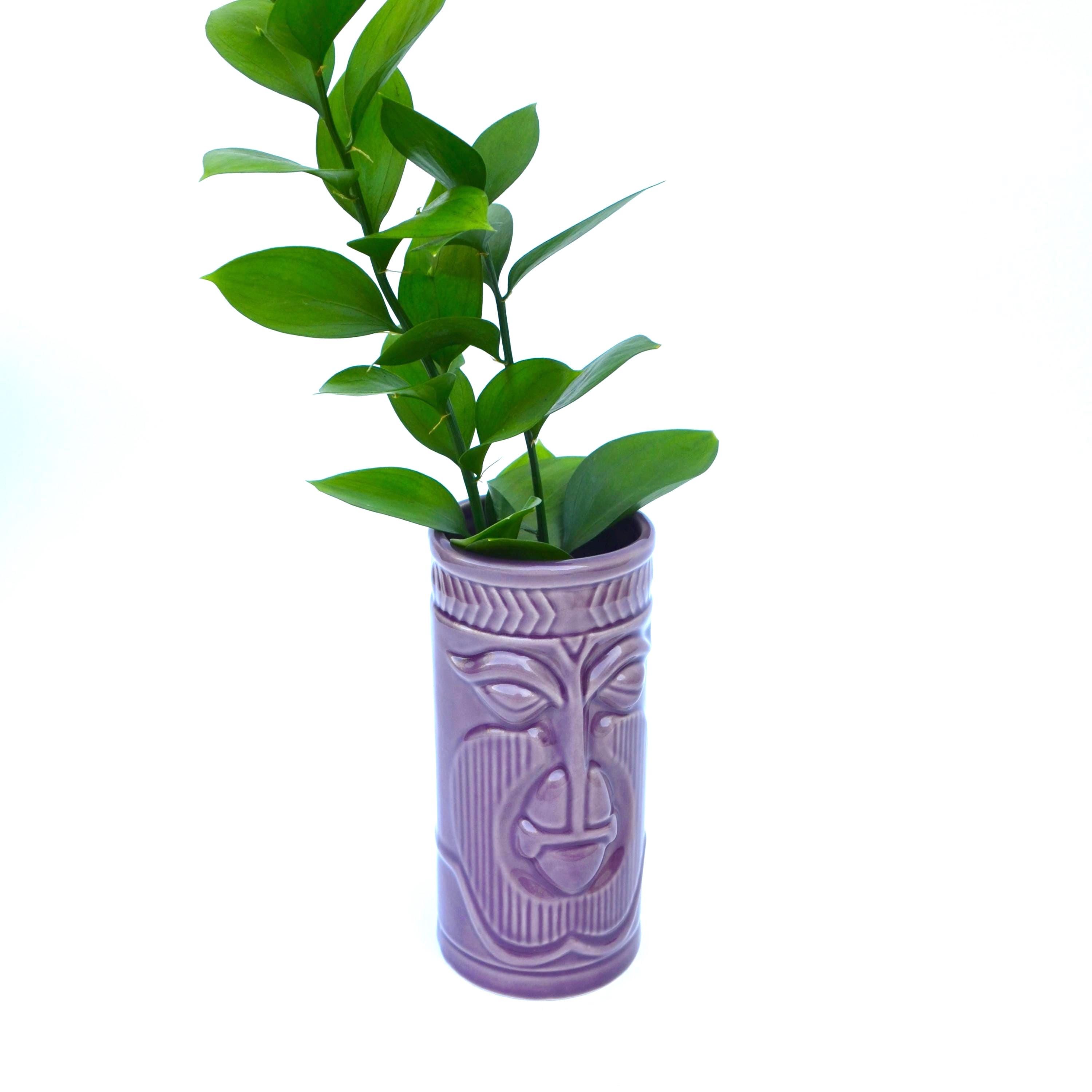 Vintage Tiki ceramic tumbler. Perfect to add a little character to your office or bar top. In a great shade of purple. We like to see it repurposed as a vase.