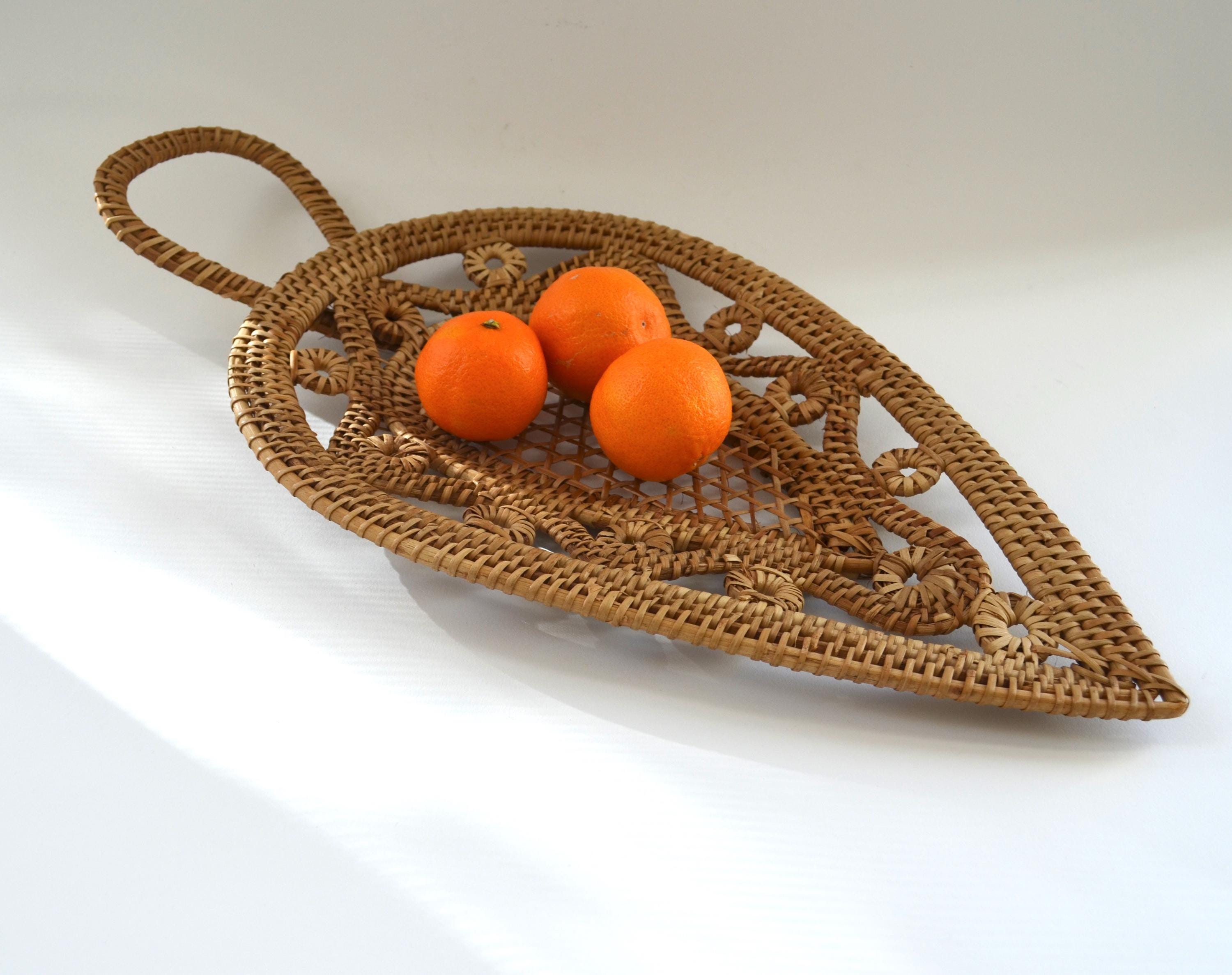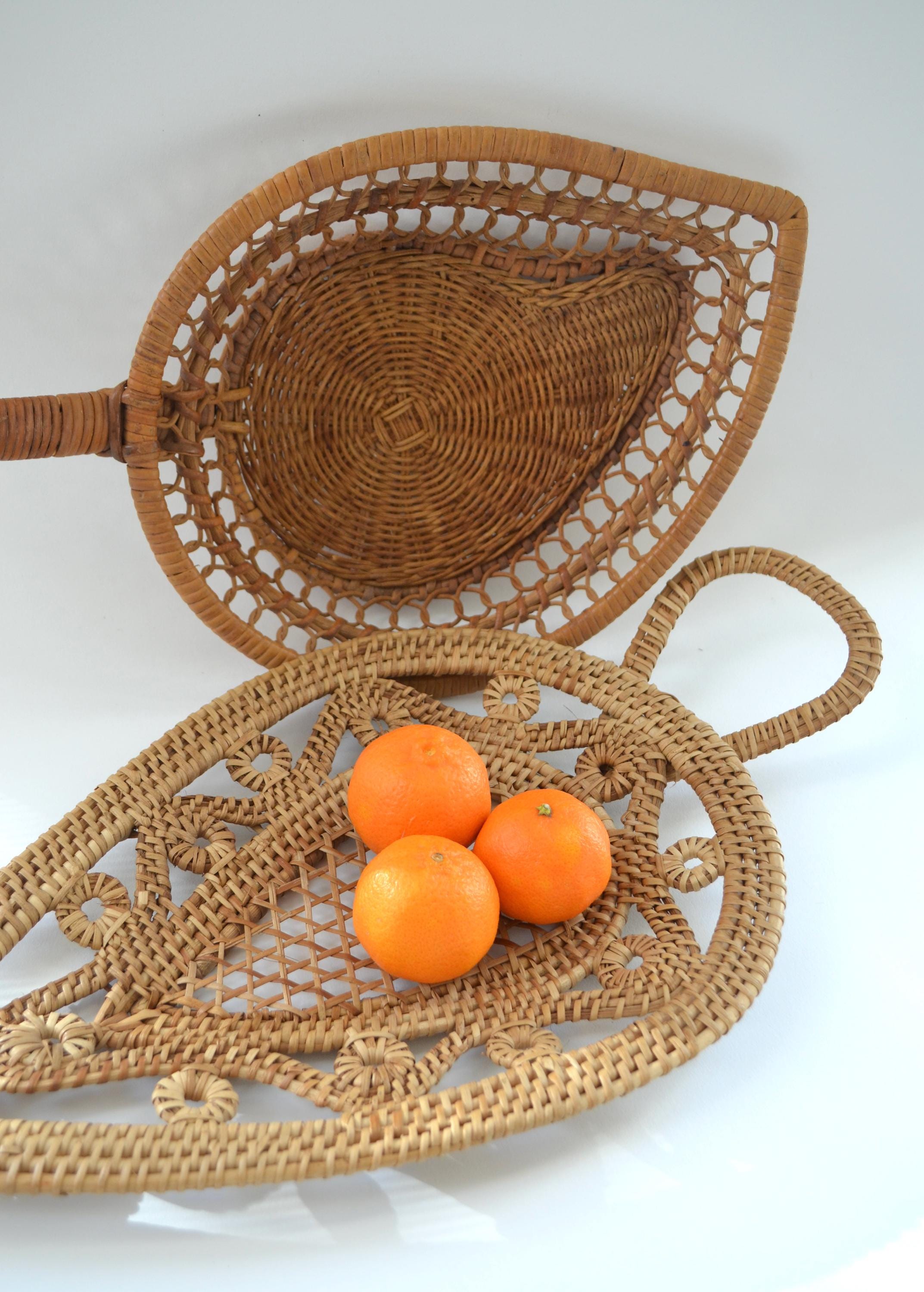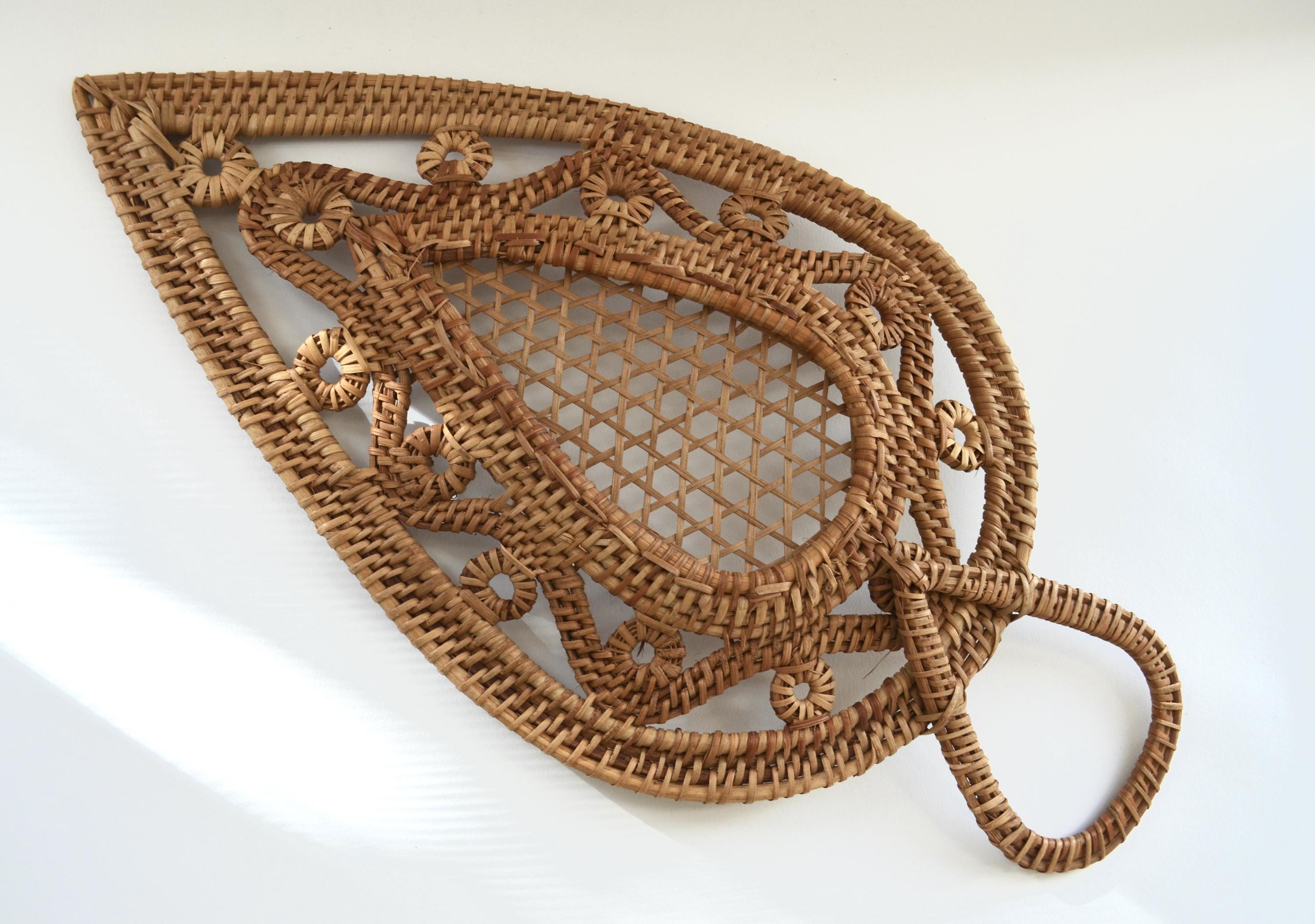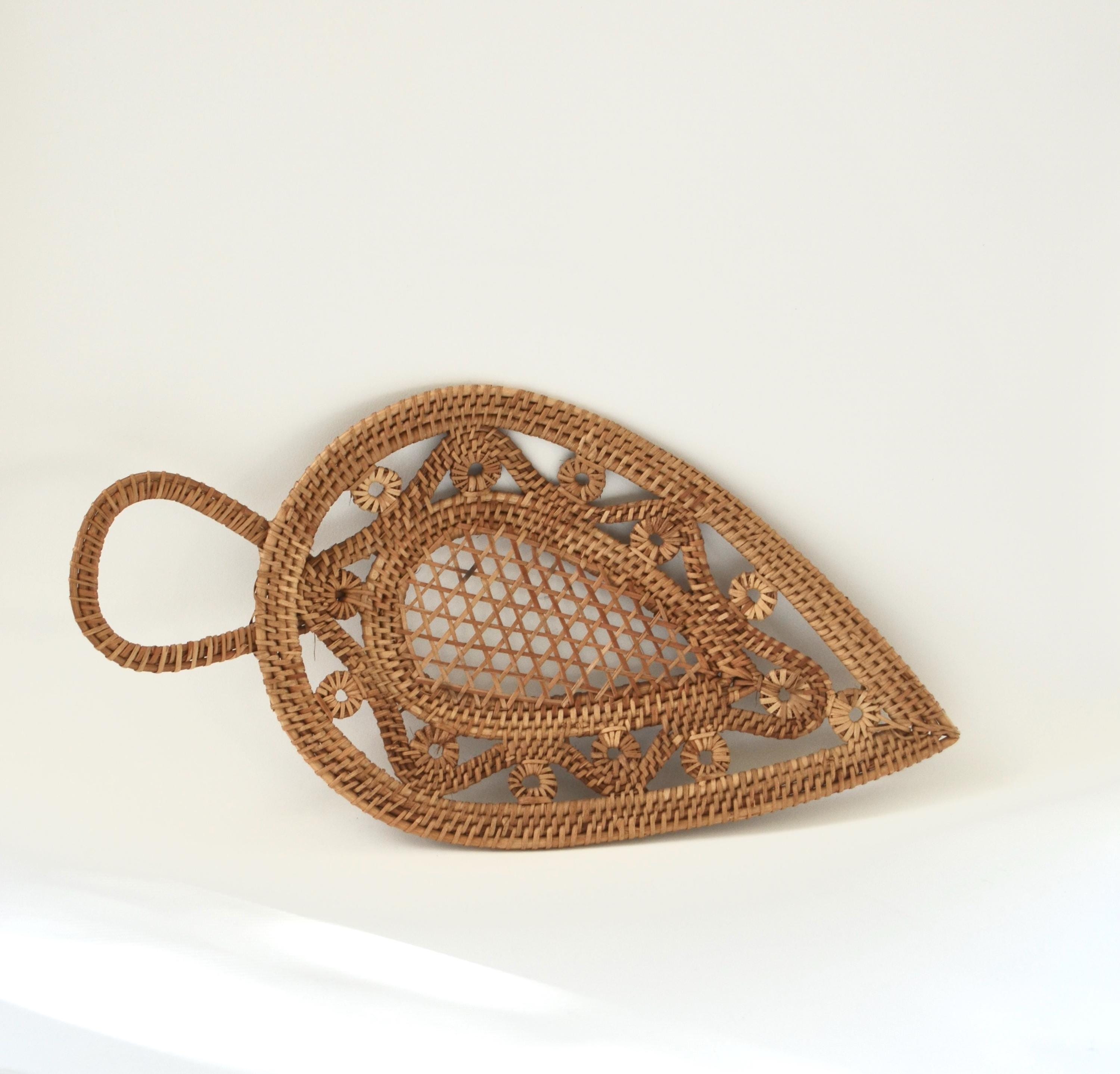 Vintage paisley shaped wicker tray. Great for a dining table centerpiece or display it on the wall.